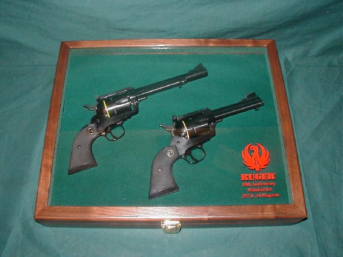 I just bought a matched serial number set of the 50th anniversary Blackhawks in a display case. I know that when Ruger released the 50th 357 Mags in 2005 they held a few back and combined them with the 50th 44 Mags that were released in 2006 with matching serial numbers. They went out in December of 2006 in a display case but have no idea how many were put out. I talked to Ruger and they don't know either. Does anyone have any information about them? I do have a copy of the release from Ruger introducing them.