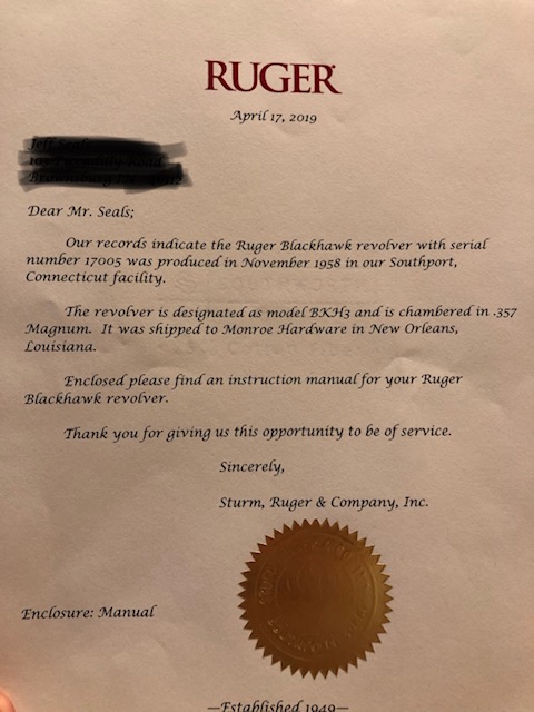 I purchased this gun in 1980 at a gun show in Indy with money I had earned from a paper route at age 14. I was told that the gun had came from an Estate in Texas. I recently requested information and a Letter of Authenticity from Ruger and was sent the attached letter. I am looking for any further information that you knowledgeable members might have, such as BKH3, what exactly does that mean? I am also attaching a few photos of the gun for you to see.