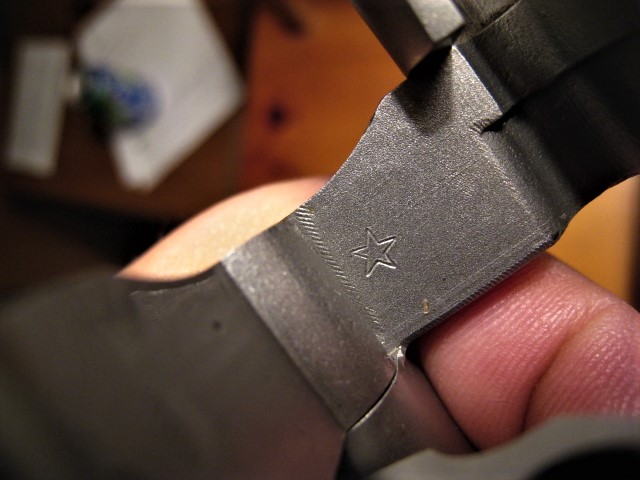 That brings me to my next thought. I do believe that the gun was refinished. Look at the outside of the gun and the inside of the frame. It looks like it was bead blasted. The rear of the frame and recoil shield looks too good and you can see where the cylinder lock pin has marked the rear of the frame. Then look at the crane where the armorers star is. It has obviously NOT been blasted. Whoever did the work probably did not want to possibly obliterate that special marking.