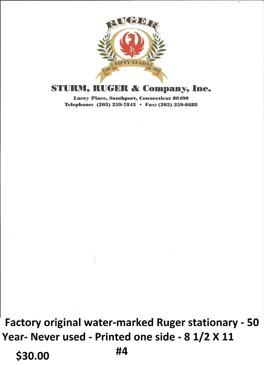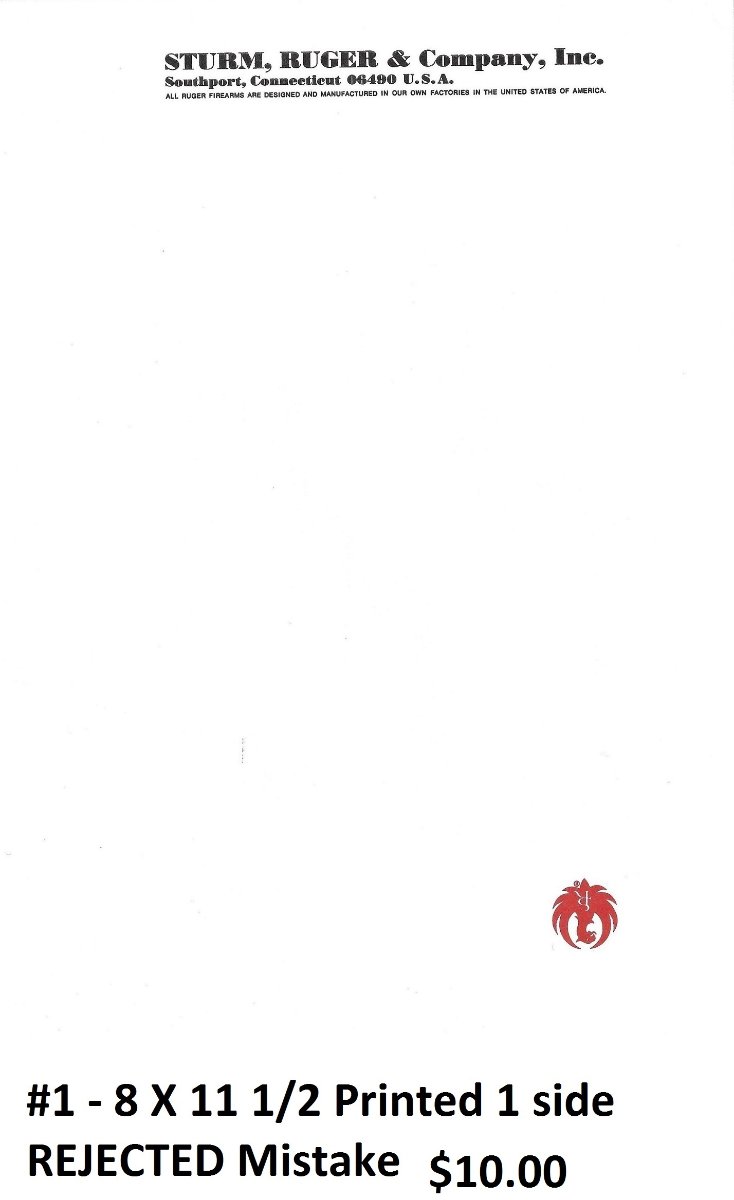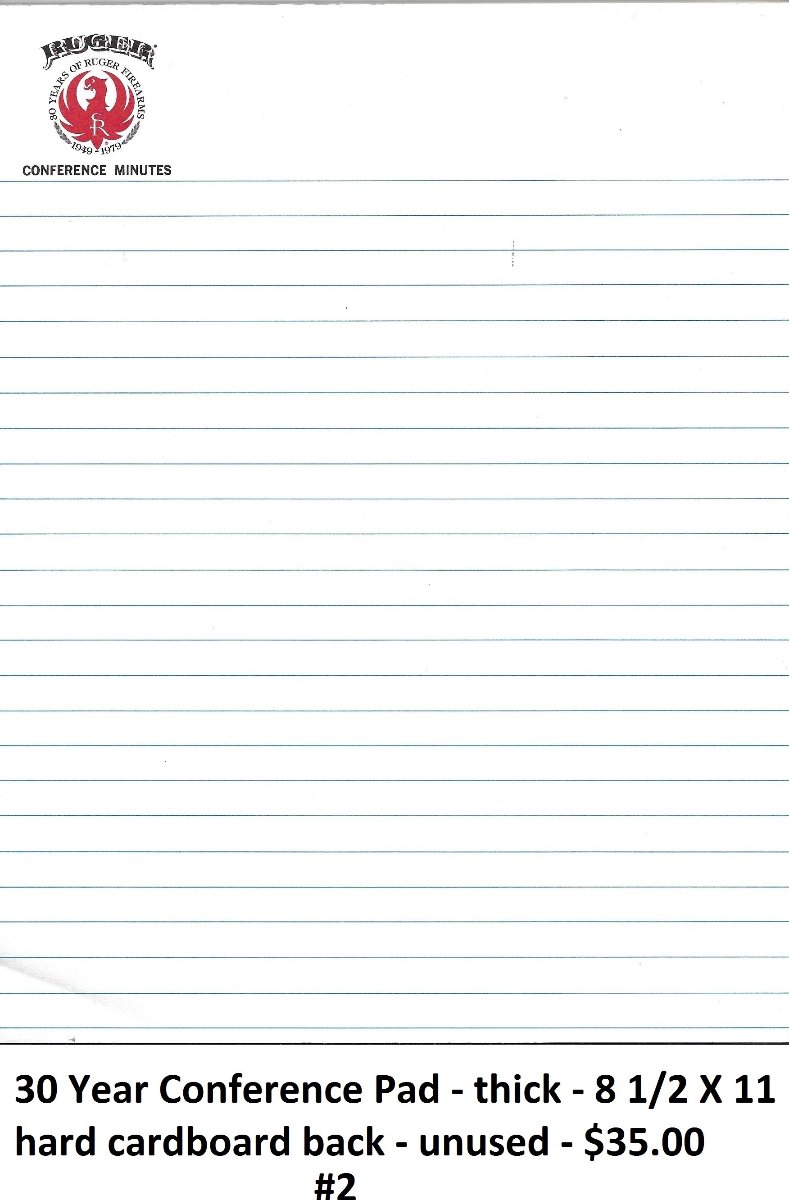 For your Ruger paper collection: Factory original Ruger paper. No longer in use, out-dated. Only 2 conference minute pads. Several of the other 3. All new/mint. Shipping $2 each. Buy more than 1 & shipping is free. Check, PayPal, M.O.