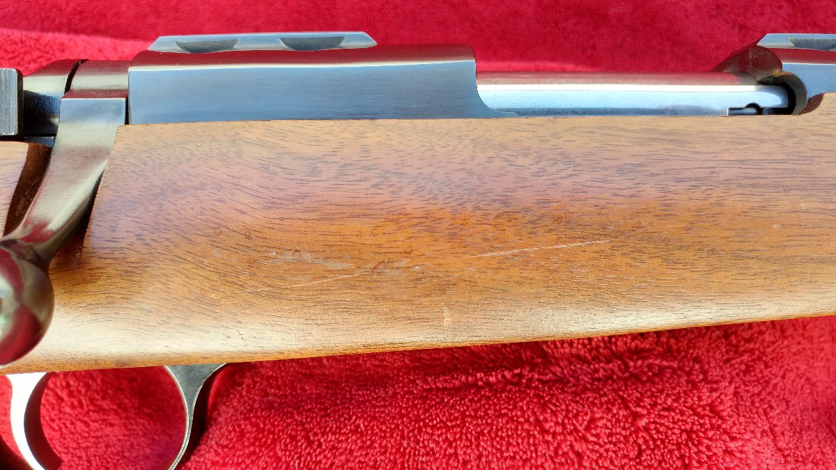 Includes box and all contents. Metal is in excellent condition and wood is very good with one blemish on the right side of forearm. I have installed bolt shims, a Volquartsen sear & spring, and shimmed the trigger and sear pins. Rings uninstalled.