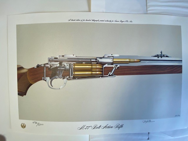 I have a set of lithographs by the Artist James Kritz, who I believe was commisioned by Ruger in the 70's to paint cross-sections of firearms. They consist of 2 parts (all The Shoulder Arms Collection) a standard set and a limited edition set (of 500). They are immaculate as I have just found them in storage. They are also quite beautiful - I don't imagine manufacturers commission such artists anymore!