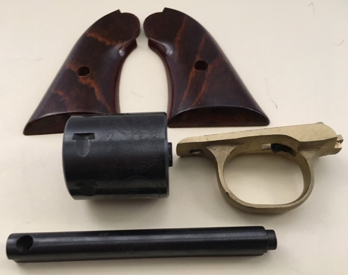 Trigger guard - grips-cylinder-steel ejector housing. Camera flash reflection on steel parts looks like wear, but cylinder & housing are mint. $125.00 shipped for the lot. Return if not satisfied for full refund. donfindley806@gmail.com