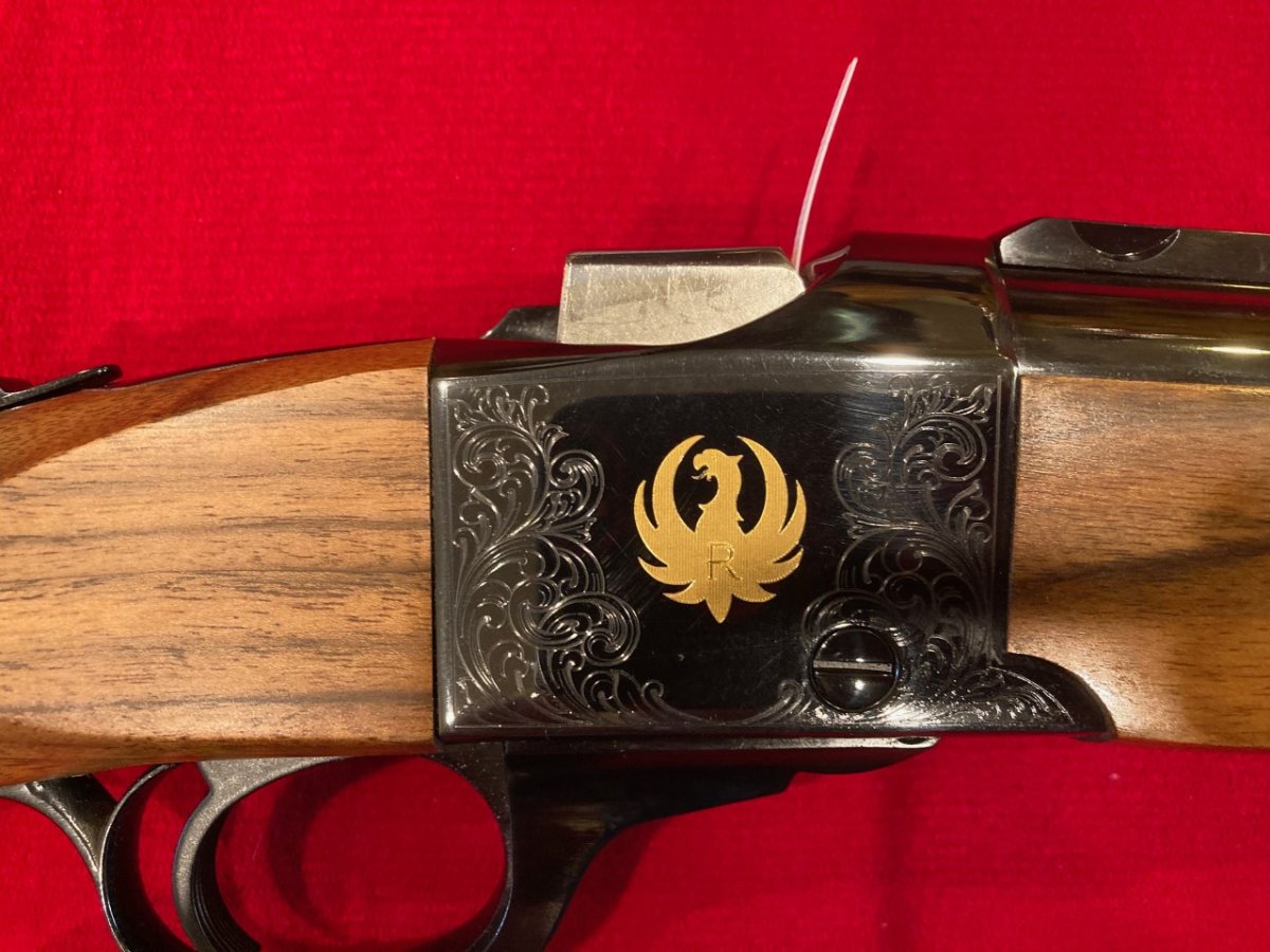STICKY #1 S/N 134-55341 One of two Ruger No. 1 30-30 Winchester rifles made to celebrate the 125th Anniversary of the 30-30 Cartridge. Beautiful wood and engraved with gold inlay. These two are probably the only two No. 1s to be made in this configuration. Bids will be taken on each individual firearm.