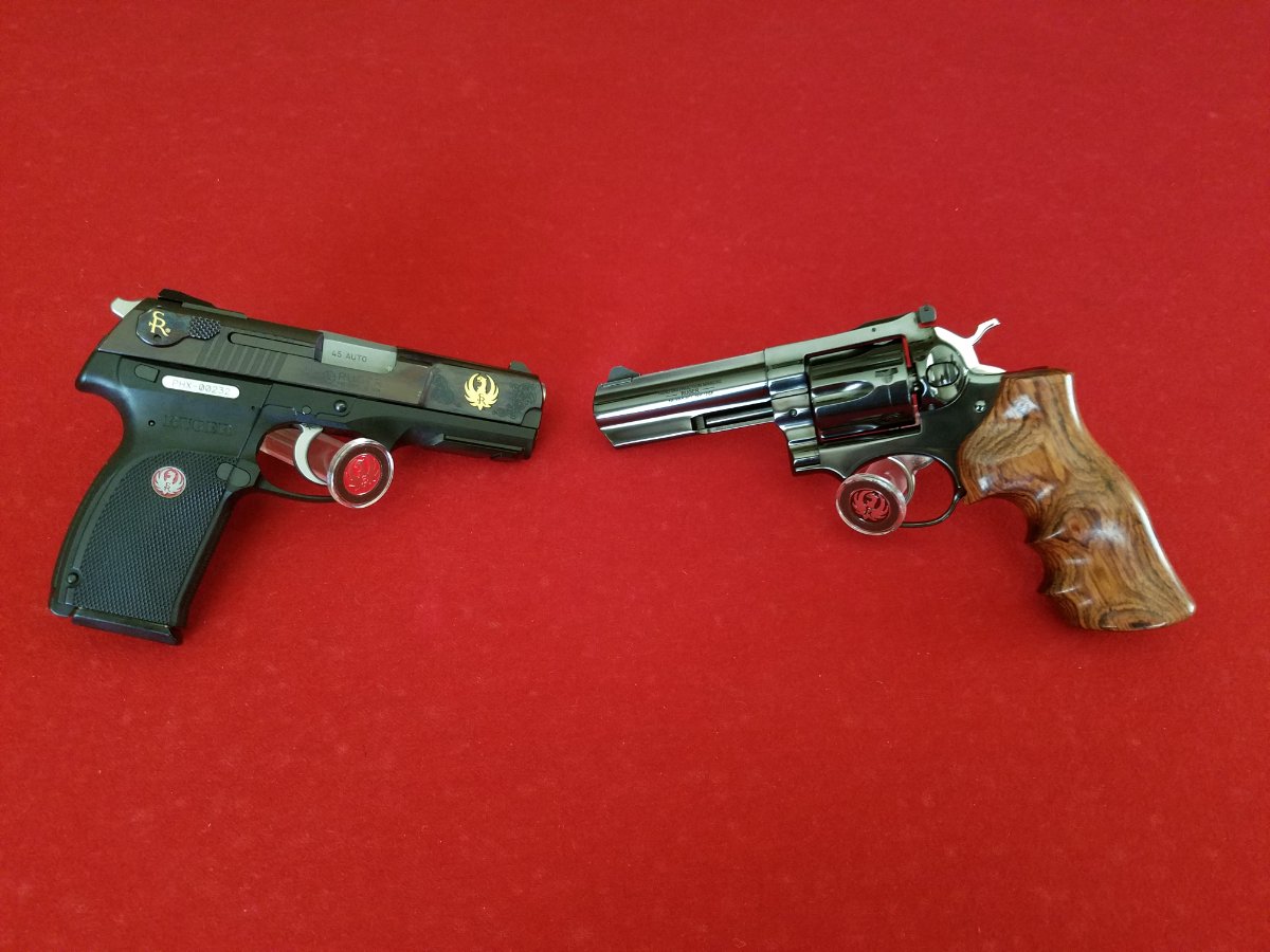 My newest Ruger, GP100 Royal Phoenix, only 595 made, sold by Lipseys, production years 2010-2012. No warning label. Left side of barrel just says Ruger, Newport, NH, USA; Right side says RUGER GP100, .357 Magnum. High polish blue, trigger and hammer smoothed and high polish. Really nice, highly figured Hogue grips (they are NOT laminates). I will bring it to OGCA to let people see it (Not part of my display this time)