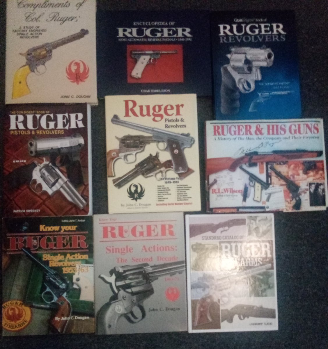 That is a great looking group of Ruger revolvers. I do believe you like those big bores! We do not realize how blessed and fortunate we are to live in a country where we can own all of the firearms that we please. I sure hope that you can obtain Official Collector Status in your country where you can own more Rugers. Your library is impressive too, you really have some great books.