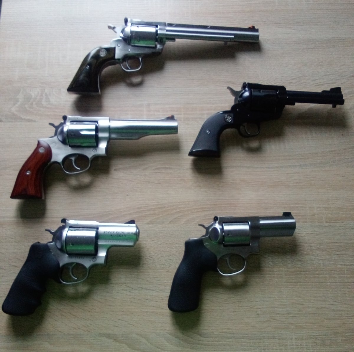 Unfortunately, I still have to wait for the Super Gp100 and the Single Six Hunter and I don't think that they will arrive in Austria before 2022. On the picture you can see the 5 revolvers that I currently have at home. When the other 2 are delivered, I will attach a picture.