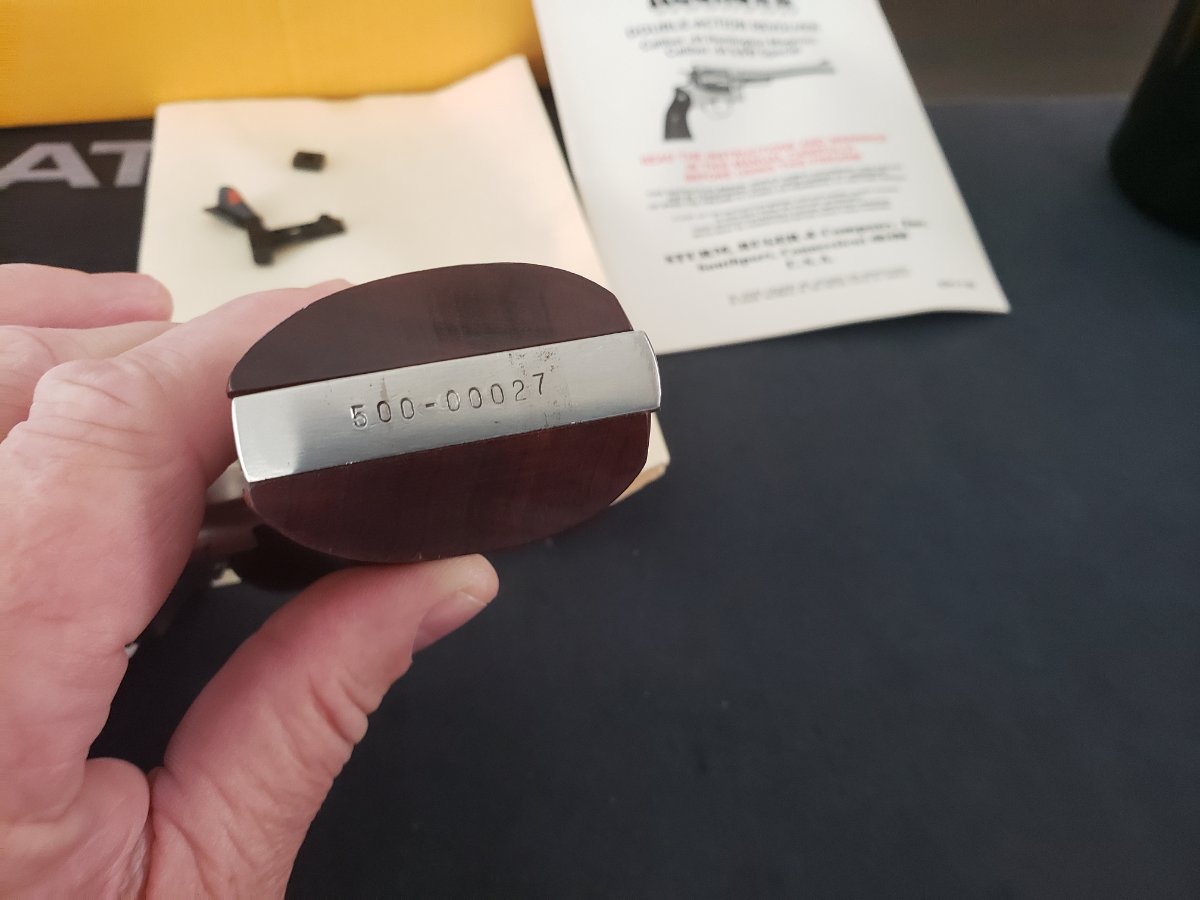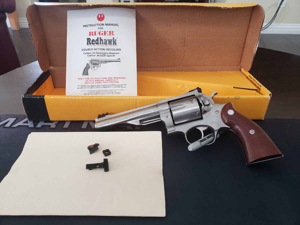 Michael, another 2 digit Redhawk popping up, great find, looks good. Look at the front sight, I see the red insert is rounded at the bottom which would probably be a later edition as Chad said. I wonder if the original was a dovetail red insert or a plain black sight being it's a 5 1/2" model. Now I have a special engraved Redhawk (For 2020 Friends of NRA) 5 1/2" and the front sight is the same shape but has a bright red/orange stripe on the ramp only.