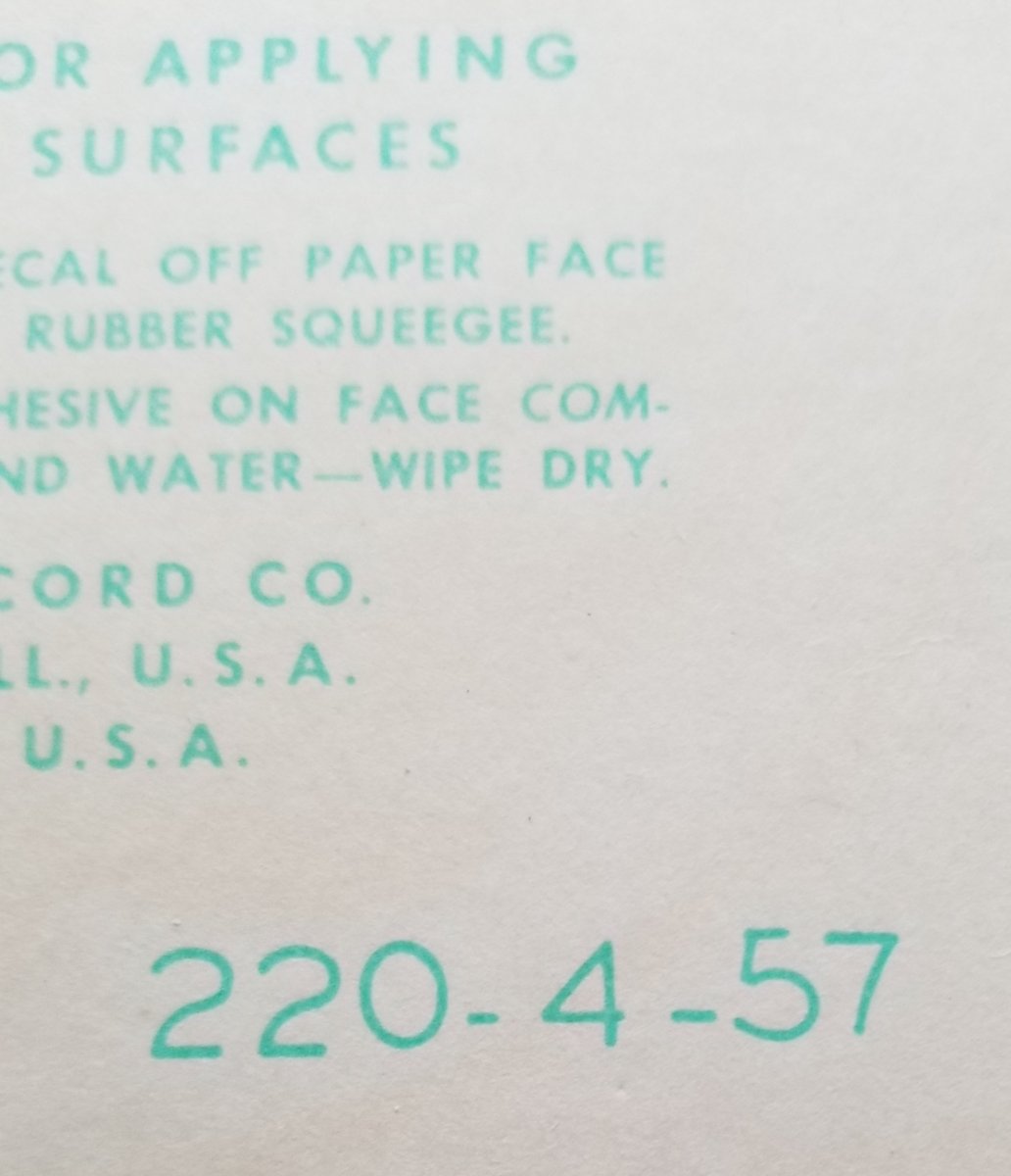 Back of decal 1957 date