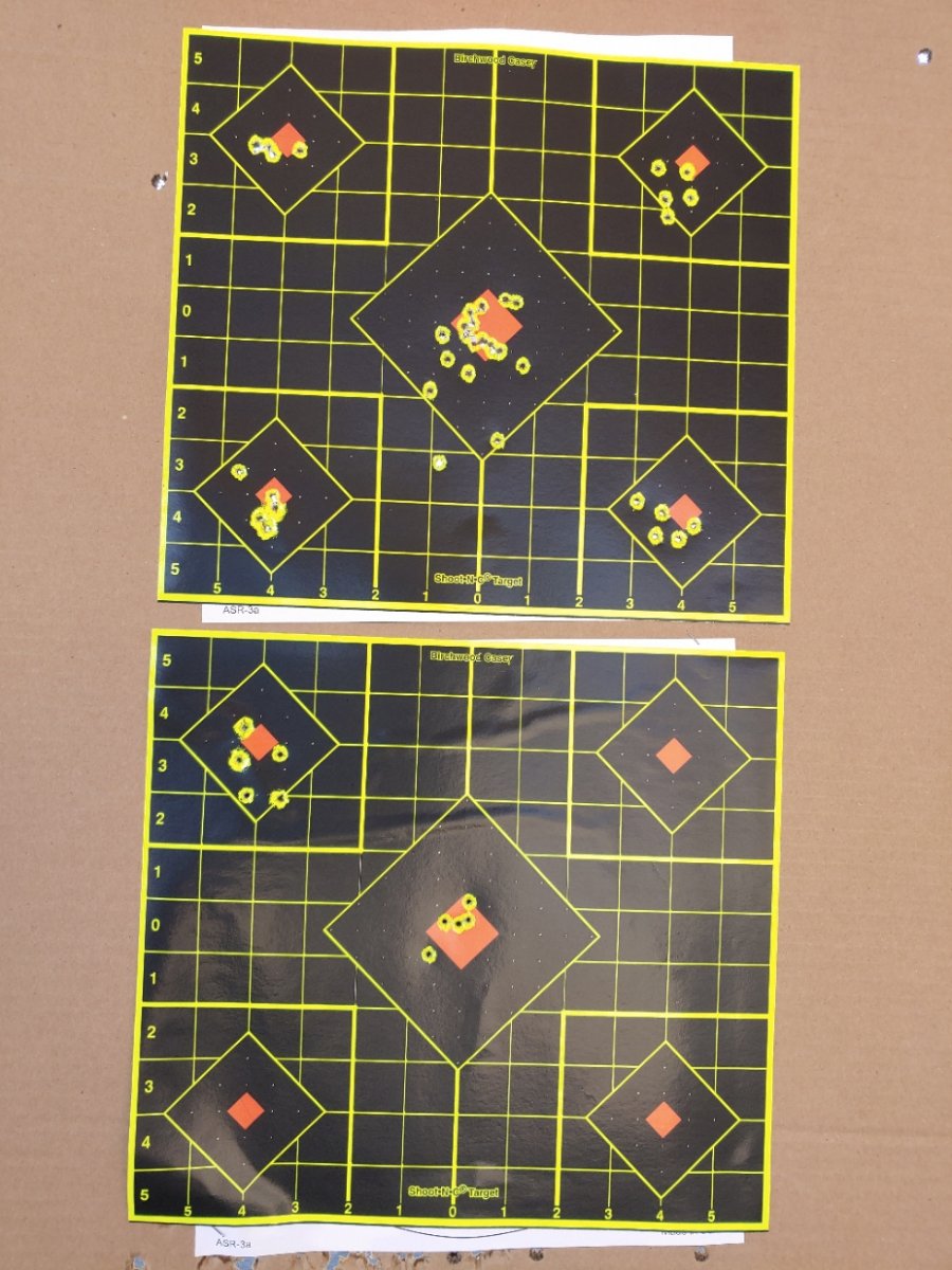 Took it to the range a couple times. The first pic is a rushed sight-in at 50 yrs and 4x optics from a bag rest with SK High Velocity Match ammo. The second photo was the same set up at 7x optic. The top target was with SK HV Match and the lower target was Lapua Midas X. The outline squares are one inch. The rounds look identical and the results are similar. It was a hot morning with sweat-gets-in-your-eye conditions.