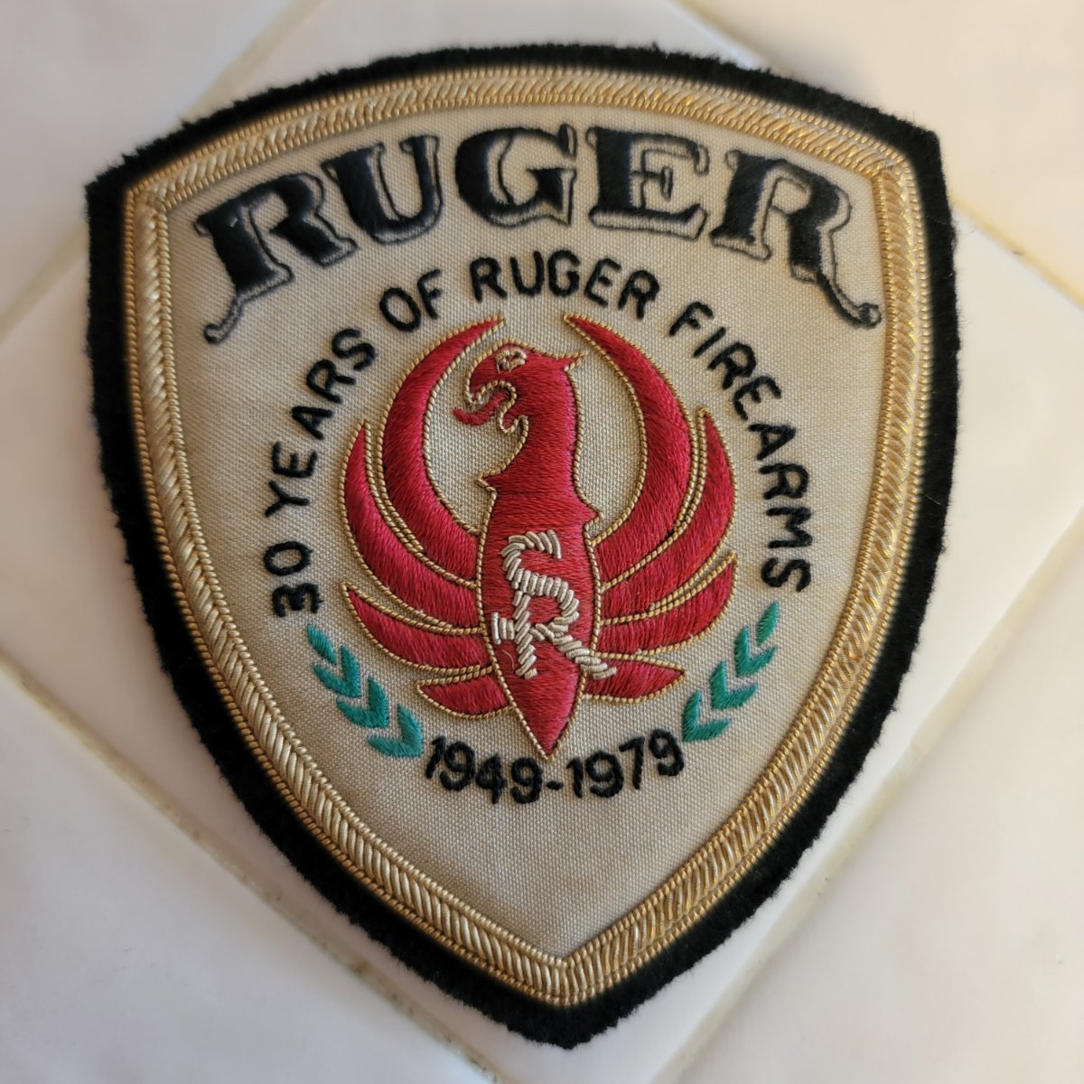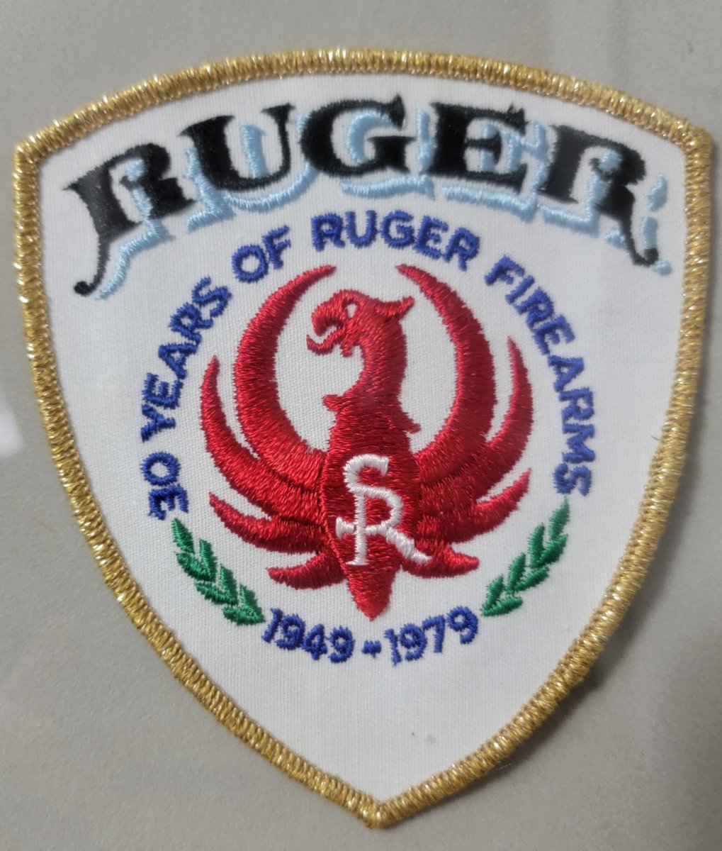 These are both one of kinds. Sample/prototype 30 year patch. The other is a brassard, on the back it is actually set up to be attached to a chest pocket on a shirt. This is the only one I've seen. Not a proven fact but I was told that Bill Ruger wore this at the NRA show in 1979.