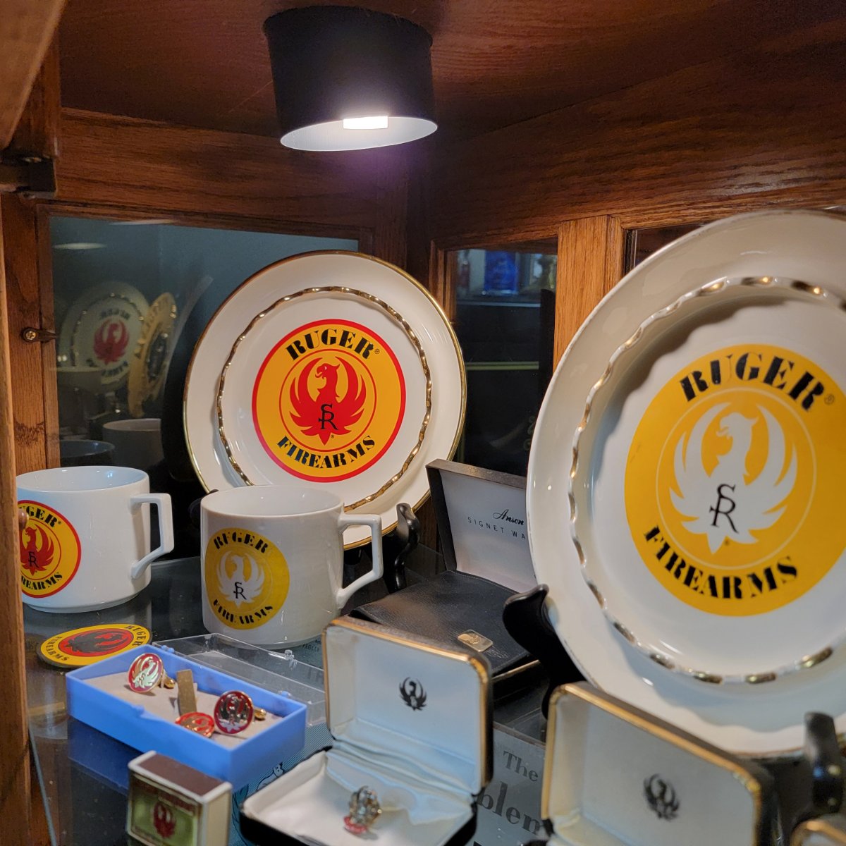 1969 Ruger did coffee cup and later did an ashtray. Actually there are two variations. Evidently some did not get the red color added to them during production. From what I was told the company who made them put them in employees break area to be used because they were not sellable. To my knowledge only one ashtray is known and I know of about 3 coffee cups that are missing red color.