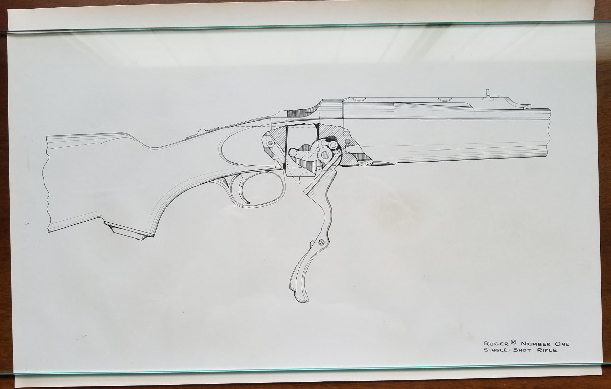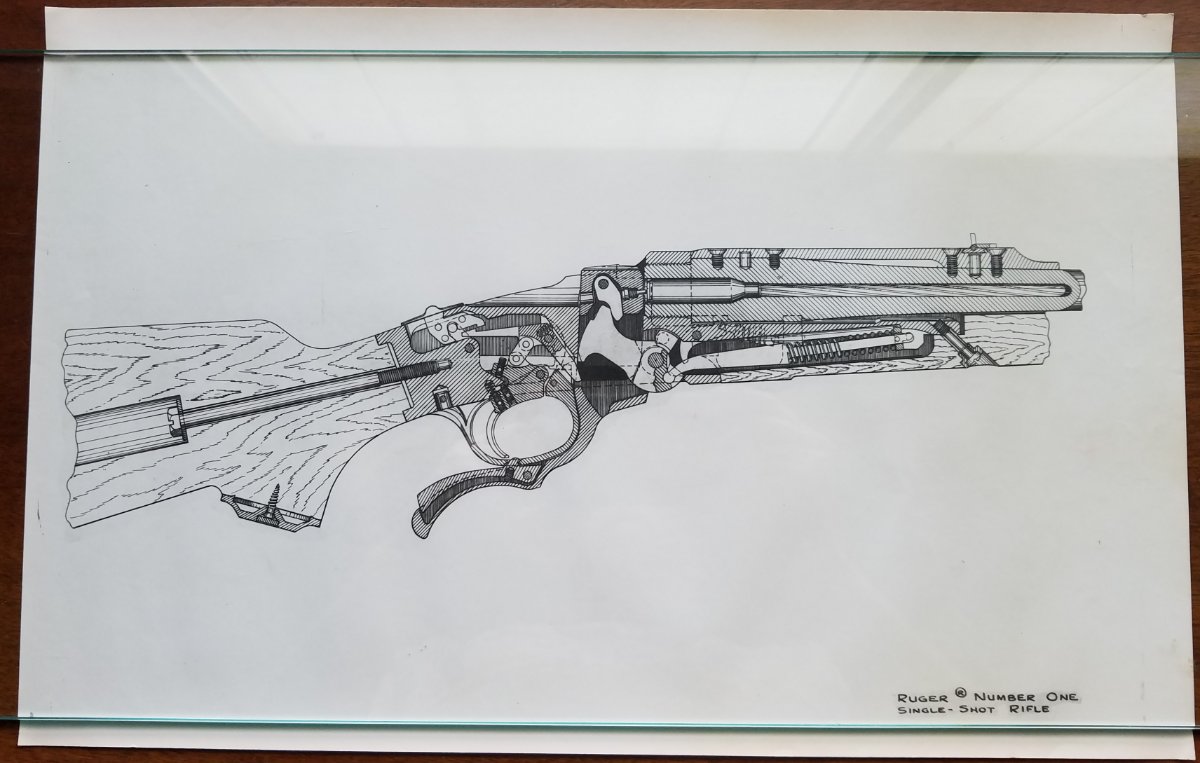 I recently picked up a set of 6 cutaway prints of the Ruger No.1. They are 11" × 16 1/2" and came in the original shipping tube postmarked December 1969. First ones of these I've seen. (See Early No.1 factory cutaway prints #2 for other pics)
