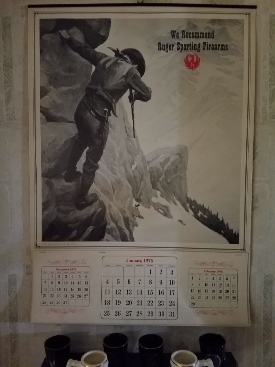Yes, it's the 1976 Ruger calendar, it had the tear off month pages stapled. If they stay stored in the shipping tube I've seen them separate when rolled out.