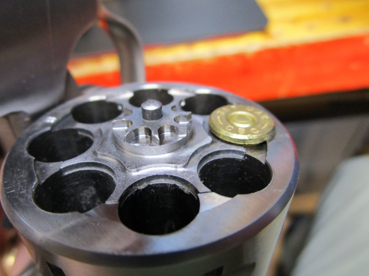 Notice the cartridge head is not completely supported. Almost looks as though the rear of the cylinder wasn't milled correctly. I sent an email/photos to Ruger after talking to customer service but haven't heard back from them yet. The end of the ejector rod doesn't look quite right also.