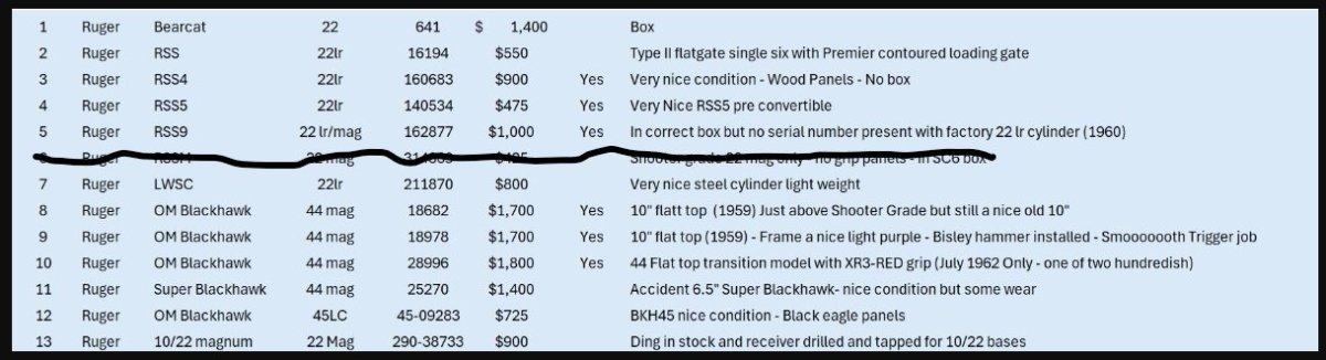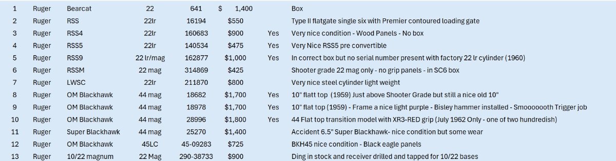 Troy's list of extra Rugers
