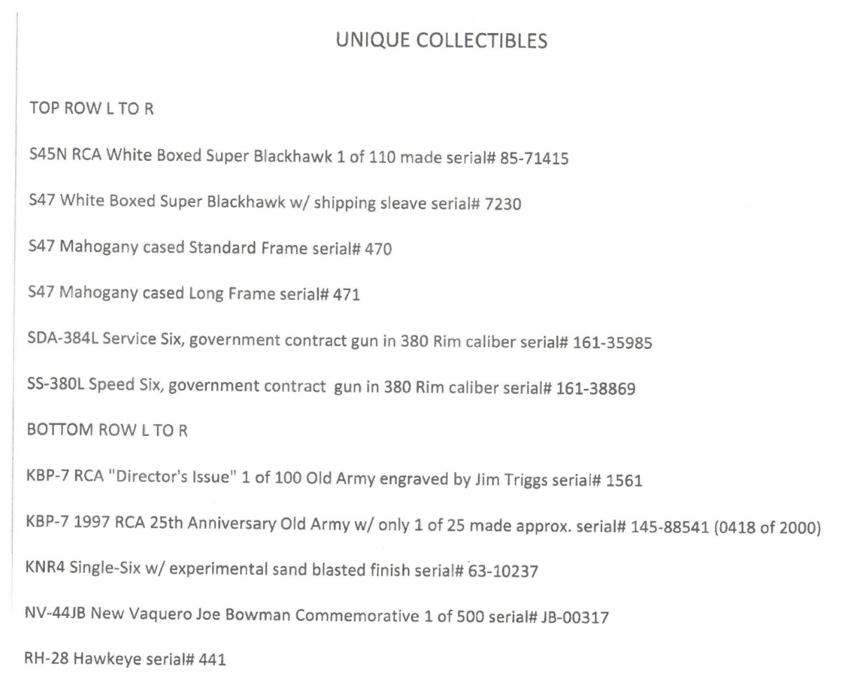 I am showing Ruger Anniversary, Commemorative and Talo's which will consist off 10/22s, revolvers and Mark semi-automatic's.