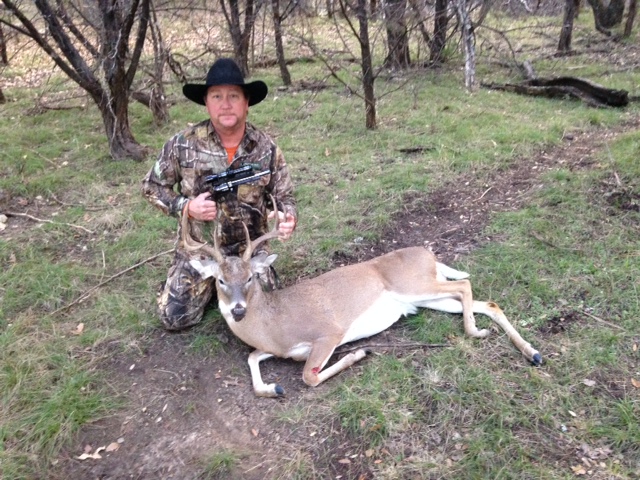 I asked Lee Newton to shoot a big buck with my Bocephus (Hank Jr.) pistol, that I had gotten from Terry Wolosek. He gave me specific instructions to put him down......and I did just that! I owe Lee for letting me take down my first one with this pistol, and of course Thank you again Terry!