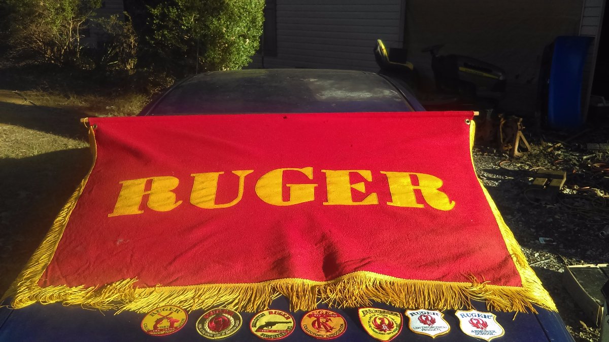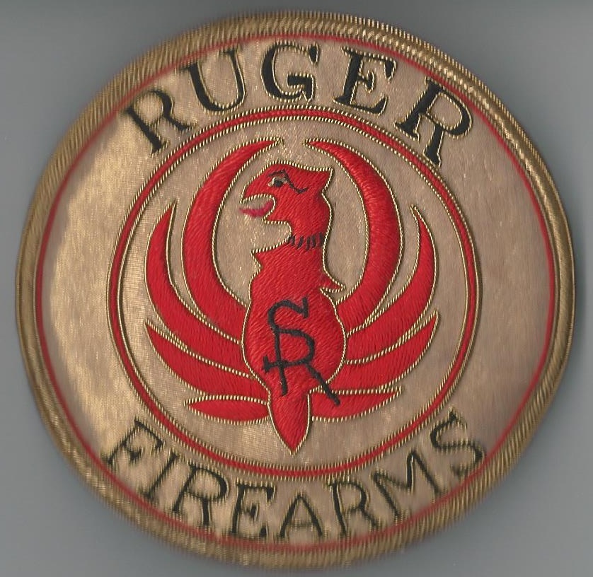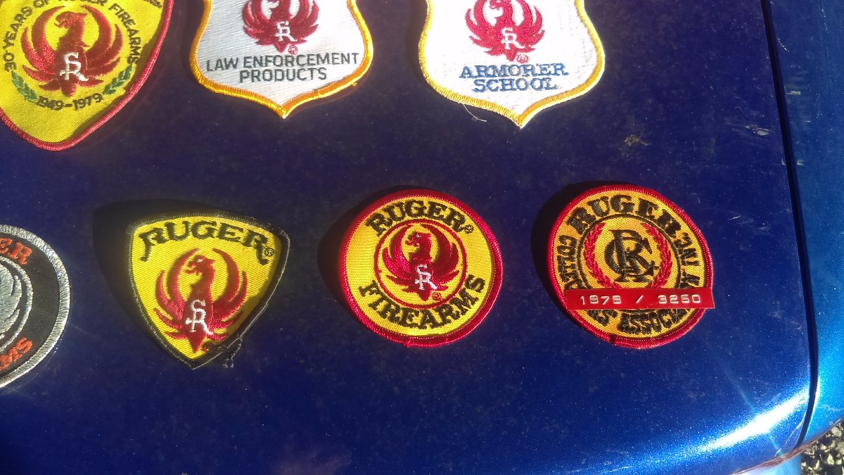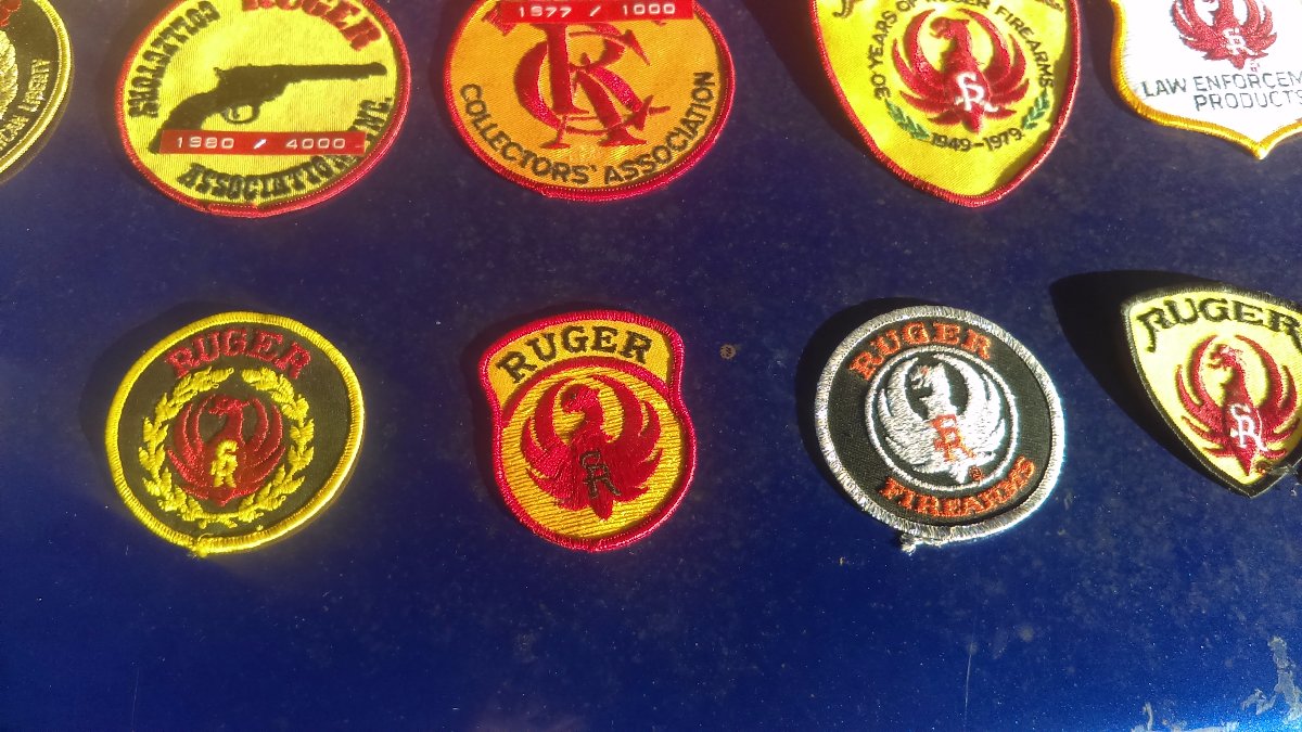 That is a great patch collection! I'm not sure if this early (probably 50's) brassard could be considered a shoulder patch. Probably made of light plastic, cloth material covered, 4 inches diameter. Ruger employees would pin this to their jacket as they manned the Ruger booth at NRA meetings/shows. Held in place by 4 pin fasteners. One is pictured in Wilson's big Ruger book.
