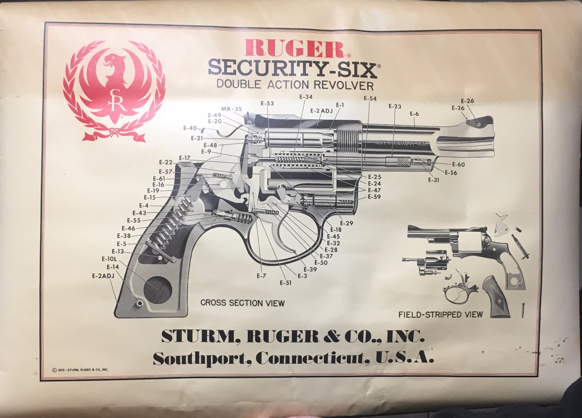 This was another item that showed up at my table in Tulsa. I had only spoken to the gentleman who left it for a few minutes. Later, it was just laying there behind the display. I made sure to go back and thank Mr. Scraper and get to know him better. He was generous to me and shared willingly answers to some Ruger questions! So, here is a 1972 RCA Ruger Security Six poster and Original Tube. Poster measures 22 1/2" X 29" and has some sort of rigid edge protectors on the top and bottom edges. Thanks again, Bruce!