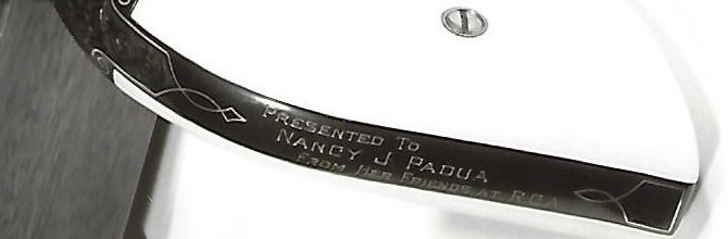Miss Nancy Padua was employed by the Ruger Collectors Assn. in 1978. She researched our Rugers and issued letters. You might say she ran the RCA. Those were the "good old days". A group within the Association decided to show our application. Nancy was partial to Bearcats. We commissioned master engraver Bob Evens to engrave with gold bands a Super Bearcat which we presented to her at the May 1982 RCA annual dinner (NRA Meetings) for all she did.