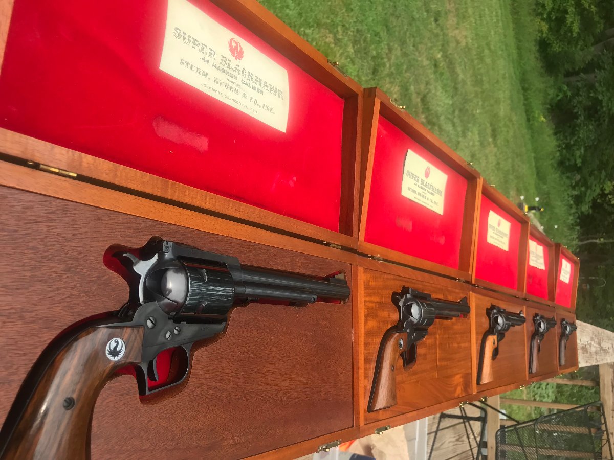 I've accumulated a few different groupings of Rugers before I really fell hard for one. Like most Ruger folks I have went through a few phases. I still have all my LIBERTY Single Sixes and LIBERTY BLACKHAWKS cant get rid of them. I'm still fond of my double action collection and M77 collection as well. However I've never been bit by the pursuit of something to search every auction site twice daily for an item like I have for OM .44 Super Blackhawks looking for minty examples in cardboard or mahogany. It was great being set up back to back with you in Ohio I really enjoyed it and the assistance from Watertender was awesome.