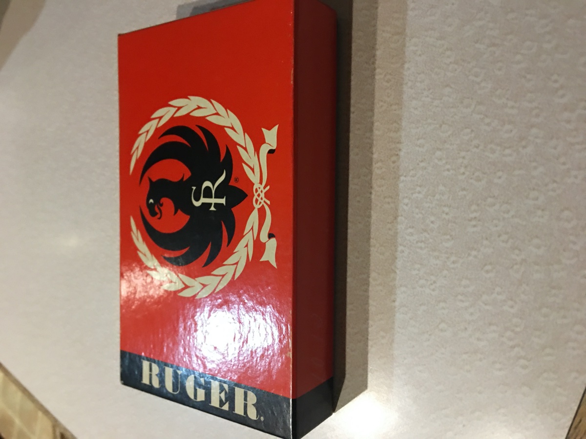 The other neat discovery was that it is in near mint condition. May have been fired once but no scratches or blemishes at all. The Red two part box is almost perfect with bright color and no tears. I have read in Chad's book about the packing or shipping sleeve but had never seen one until now. Has serial number hand written on it and RST4, 22lr, 4 3/4 stamped on the sleeve.