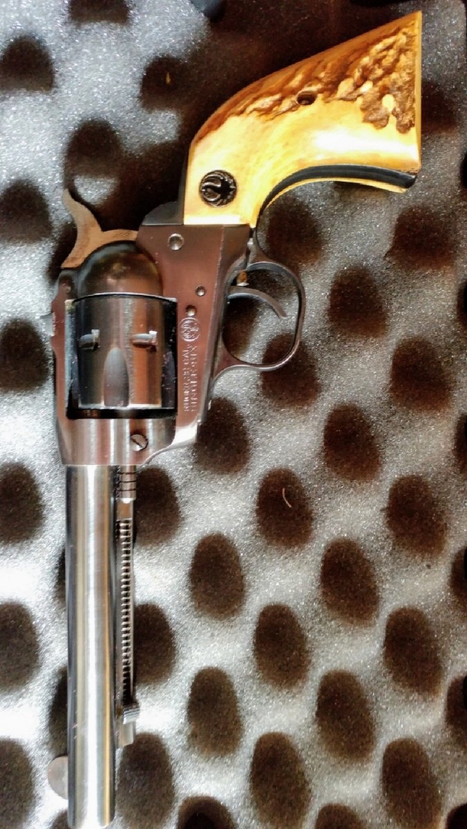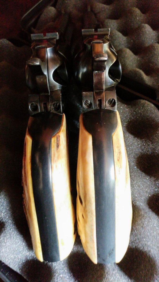 Just liberated this type 3 flatgate from CA jail. It came wearing I'll fitting Franzite grips but is now dressed in factory stags. Here are a couple of photos:
