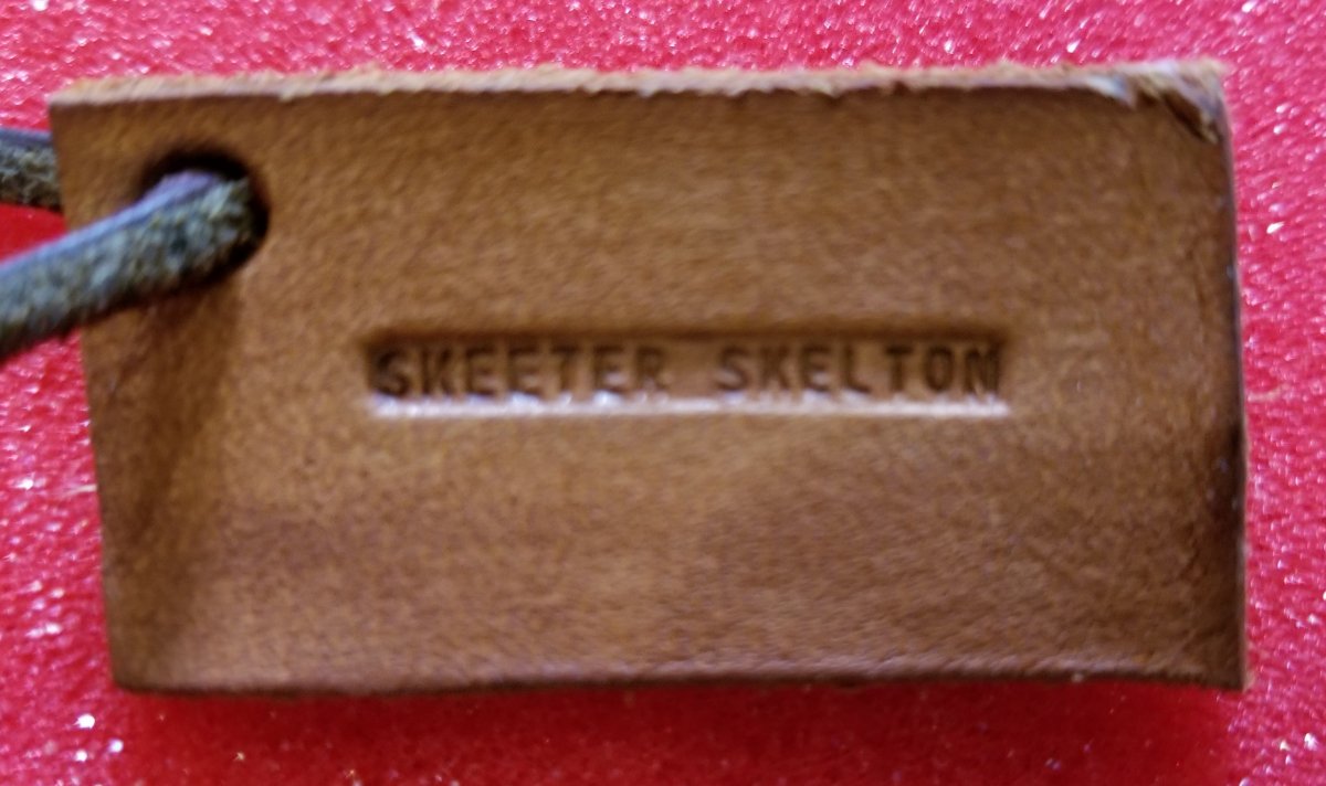 My friend Contender is fortunate enough to be the caretaker of the metal stamp that Skeeter had made and used to mark the guns he customized, made or probably some that he just owned. Mr. Contender was kind enough to stamp a peice of leather and send it to me as a surprise gift!! It now resides attached to the trigger guard of the Skeeter Single-Six. Thanks again Tyrone, much appreciated.