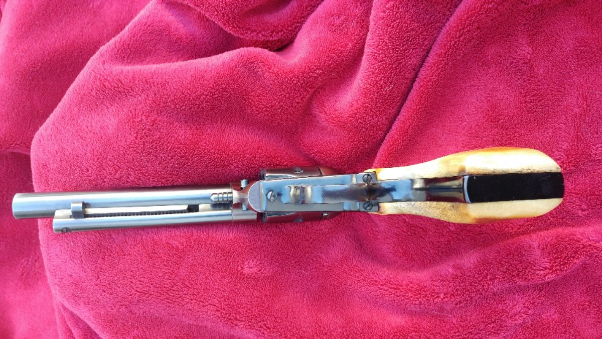 This Blackhawk 44 Magnum (s/n 475) was shipped in December 1956 and has a plum frame. It is not as striking as the frames of the .22 and .357, but kind of neat.