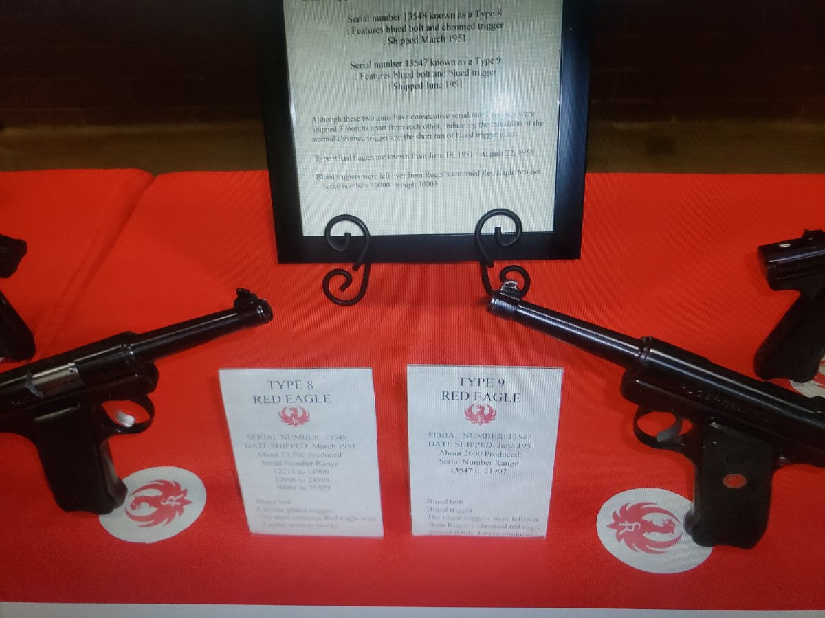 Looking at Chad's book, #8s were in three serial number blocks, 12,214-14,999, 17,000-24,999 and 30,001-35,029. #9s seem to be interspersed/overlapped with the second group from 17,273 to 21,808. I have seen people list their Standards as #9s based on the serial number but without a blue trigger. I tell them they have a #8.