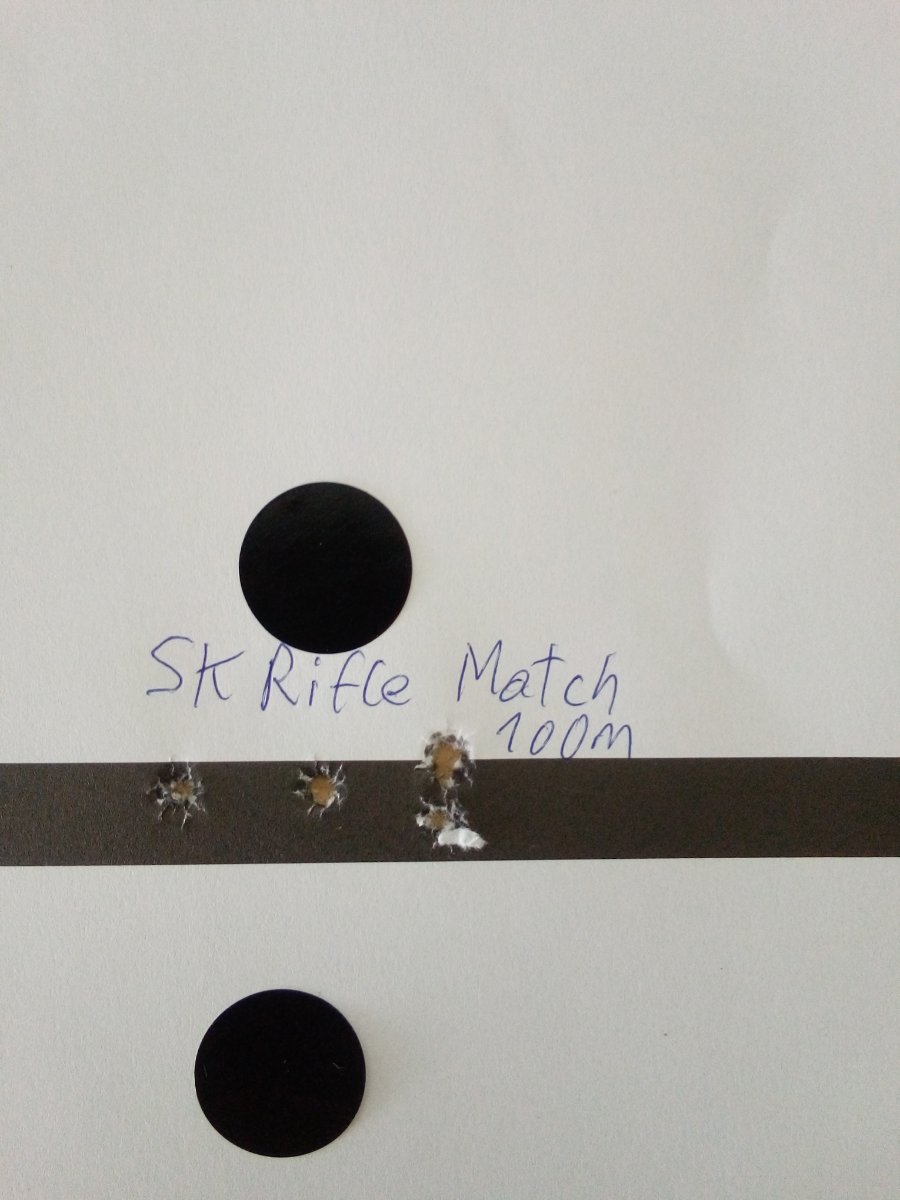 Nevertheless, I also shot at 100m or 109 yards and the shot patches serve as a size comparison.