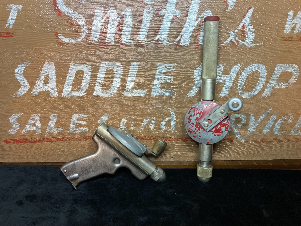 That one chromed stick drill is unusual with the 1/4" chuck. By far the most common variety of chrome stick drill has a short crank handle with rollmark and aluminum knob and no address to the rear of the chuck, but they also have 3/8 chucks. There are also a few known without rollmarks at all, but also with 3/8" chuck and short crank handle with aluminum knob (this is the earliest produced). But that is the first chrome stick drill I believe I've seen with the rollmark only behind the chuck... and it has a 1/4" chuck. This variety would see to be on the tail end of chrome straight drill Ruger corp. production.