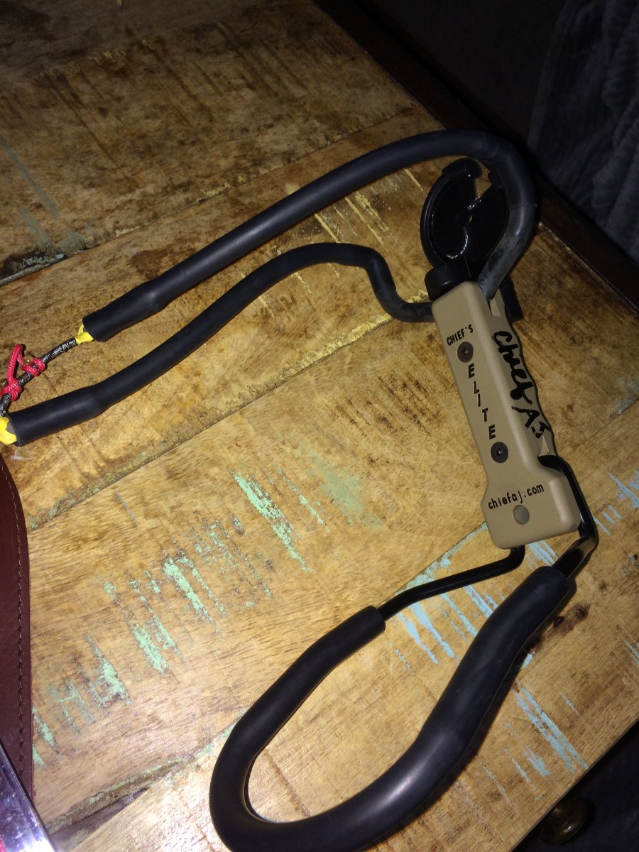 Couple of Autographed Chief AJ Slingbows (I don't shoot these) with leather quiver and iron on slingbow patch.
