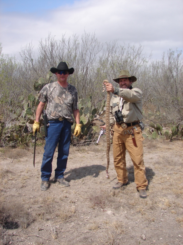 ROCS members Terry Wolosek, "Bubba" Bright and I went on a Hog Hunt in South Texas several years ago. It was March and rattlesnakes were just coming out of their dens. We found several; all of us shooting Ruger handguns. Our Potato Farmer from Wisconsin was pretty impressed with rattlesnakes. We got 3, but no hogs!