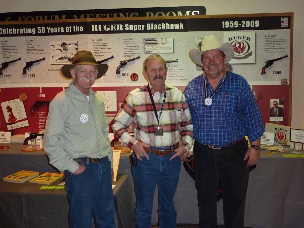 From left to right: Carl Laco, Don Findley, and Steve Adamson standing in front of Steve's award winning Super Blackhawk display. Lee Newton was taking the picture. Denver Gun Show several years ago.