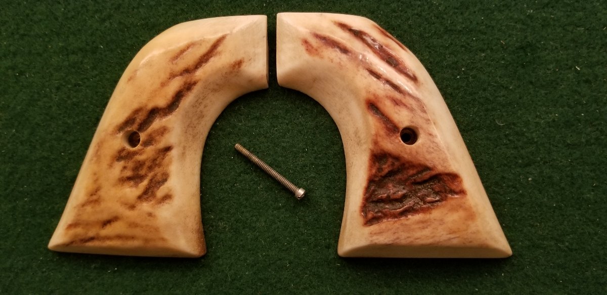 Nice old set of Sambar stags for the XR3 grip frame on early Single-Sixes and Blackhawk Flattops. $325 shipped via USPS Priority Insured mail to lower 48. PayPal, check or MO. The first I'll take them followed by a PM gets them.
