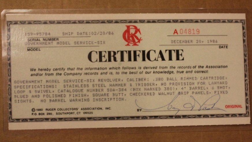 You're right Ron, I do believe it was part of the overrun. I have a copy of the RCA Bulletin #21 that was from when they were offering them. It offers two different models, the SDA-384L and SDA-382L and fewer than 250 of each model, if I remember correctly you have both of them in your display. The main difference on this one is the absence of the lanyard ring and from what I've seen the SDA-384Ls that I've seen fall in the 161-35XXX to 36XXX range where this one is in the 159- range. I will have to contact the RCA and letter it from Ruger, which I expect will say it was sent to the RCA.