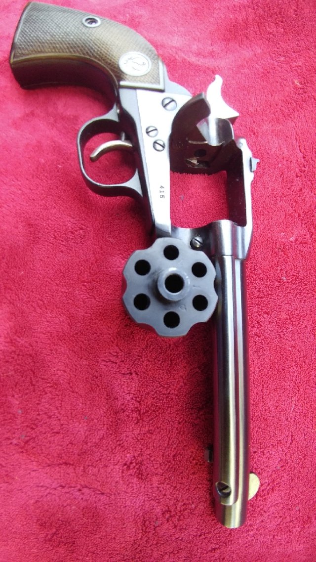 So, it looks like this gun may be unfired or fired VERY little - no turn line. It cleaned up nice but I think it has been hastily buffed out - probably while assembled. In photos you can see some finish discoloration in the cylinder flutes, and a couple of other spots, that didn't get polished. Might have been covered with an inappropriate lubricant that marred the finish. There was some sticky/waxy stuff on the underside of the top strap that was hard to get off. A small Nick on the edge of the crown has been touched up. I'm thinking about using a Dremel tool with a buffing wheel to bring those spots up to match the rest of the gun. Any advice re that?
