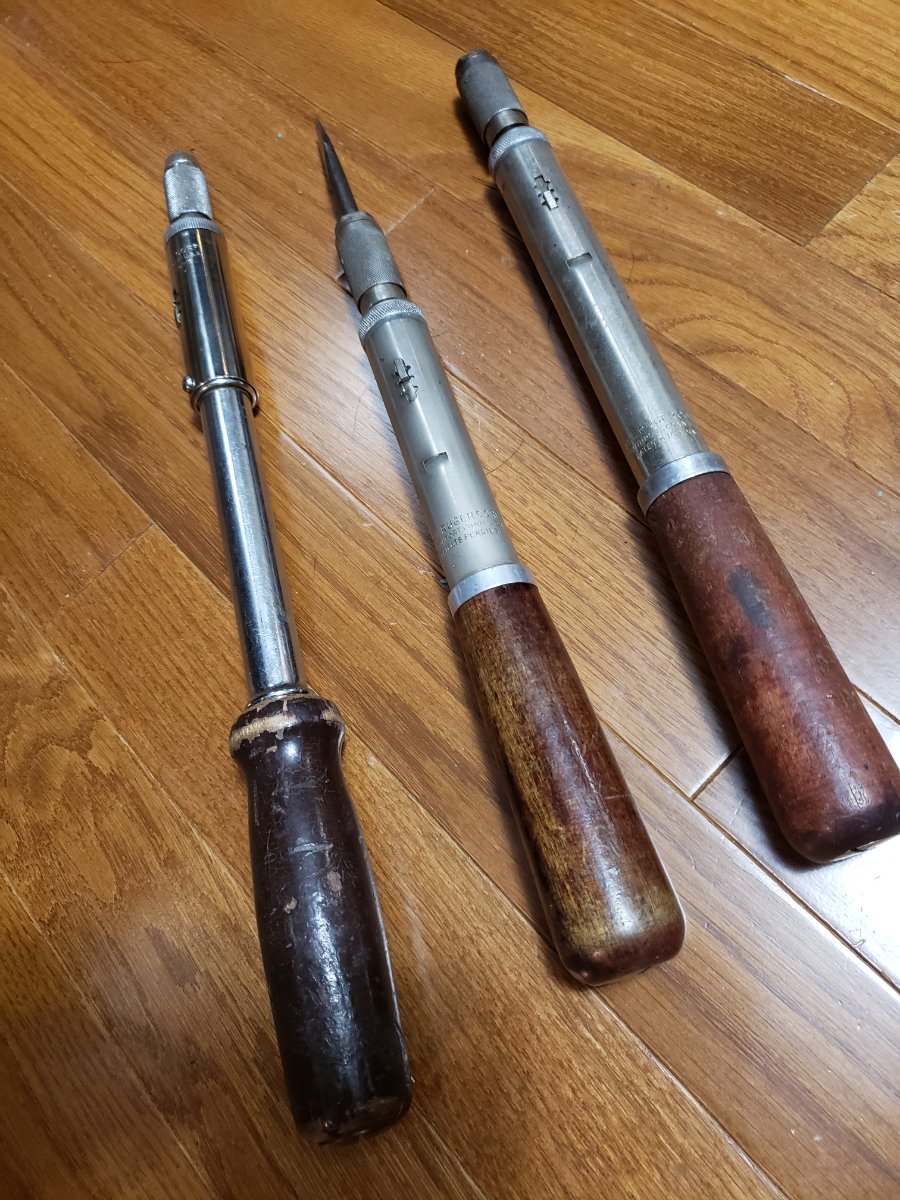 Color me jealous! I'm still searching for my first spiral screwdriver,, and you have both varieties! VERY nice!