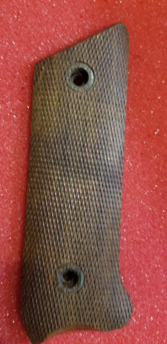 Checkered walnut grips for the early A54 frame with Eagle on left panel and magazine button cutout on the right panel. For pistols 1949 until 1972 change to the A-100 frame. These are the rarer non-thumbrest panels that have the Eagle at the bottom like thumbrest panels. Majority of non-thumbrest panels had the Eagle is at the top like the standard rubber panels. The box is in great condition and the panels appear to be new. 1st I'll take them followed by a PM gets them. $100 shipped to your door.