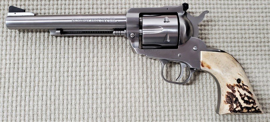 We have a pretty decent size show here in Boise. Maybe twice a year I get lucky and find a nice Ruger I want and at a price I am willing to pay. Today was one of those days. I have been working on a nice selection of .357 shooters and this one fits the bill. Made in 1975 it is an early NM with some very nice fitting stag grips. I am working on 2 blued guns, fitting them with Ronnie Wells brass grip frames. One with round trigger guard and one with square back trigger guard. I will post when they are finished.