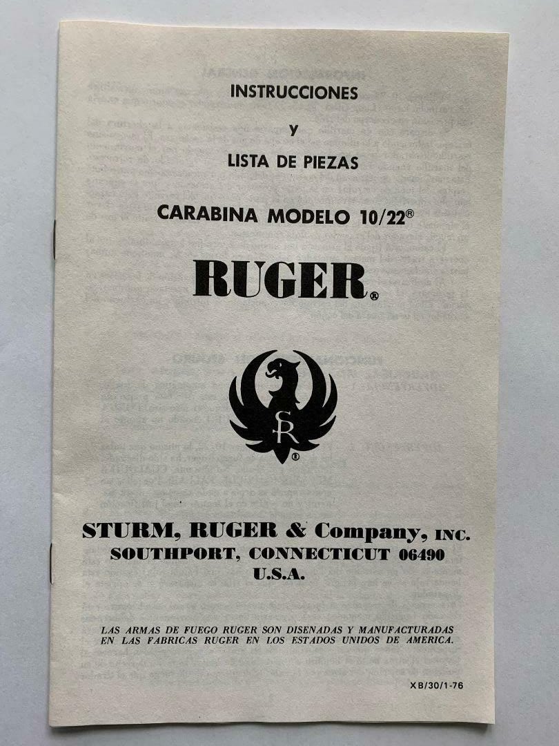 I lucked into a 1976 Spanish 10/22 Owners Manual, first one I've seen. According to Bill Workman's "The Ruger 10/22" it's the only foreign printed 10/22 manual. What say you? Anybody have any info on it. Can only provide pic of front at the moment, item is in route.