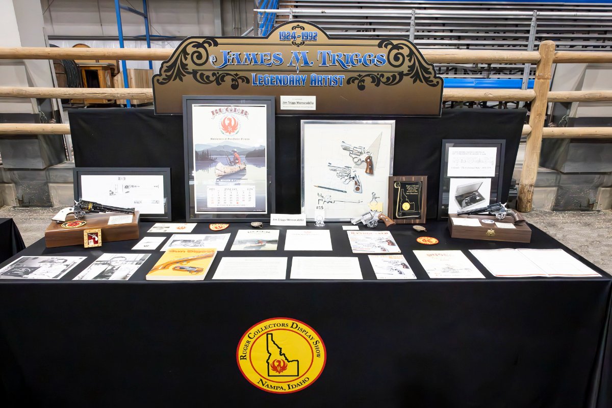 In my display, you will see examples of Jim's art work that graced the covers of books, monthly periodicals (magazines) & product catalogs. Also, are original drawings of two revolvers, an original acrylic painting on a masonite panel of the Ruger Security-Six revolver. Accompanying the painting is low back grip frame Security-Six (GA-32) revolver depicted in the painting. An engraved Ruger Old Army revolver that was presented to RCA member Ray Morgan and a Colorado Centennial Ruger Single-Six revolver are displayed.
