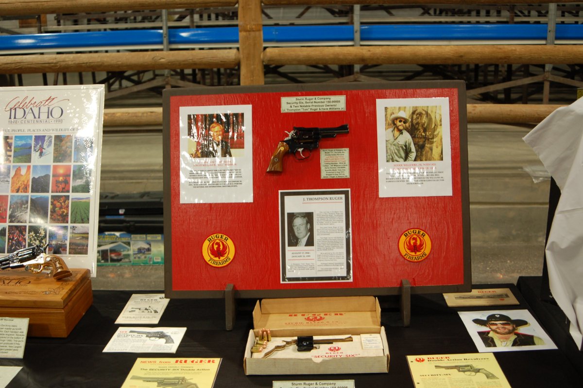 Description - The 1st owner was Tom Ruger, Bill Ruger's youngest son. Tom was the Vice President of Marketing for Sturm, Ruger & Company at the time of his death. He was only 48 years old and passed away after a six-month battle against Leukemia. A Vietnam veteran, Tom joined Sturm, Ruger & Company in 1971. He was an avid shooter and very active in supporting the National and International shooting sports. The 2nd owner was Hank Williams Jr., famous Country music star and Ruger Collector Extraordinare. This display includes the original box, Instructions and Parts List, an additional 9mm cylinder, photos of these two gentlemen, Ruger period catalog & a "News from Ruger", proudly presents "The Security-Six Double Action" flyer.