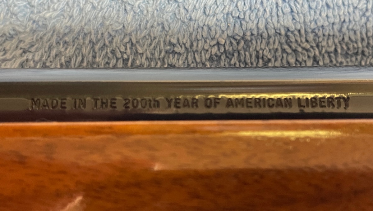 Got a call from the LGS about two new Ruger trade-ins that just came in yesterday. He said one is an early stainless Mini-14 and the other a nice No.1 in 45-70. I promptly asked him to hold the No.1 for me until I could get there. I made it down the next morning. When he brought it out from the back and up to the counter, I instantly noticed it was a No.3 not a No.1 and was a little disappointed. I looked it over and it was very lightly used and in excellent condition, a beautiful sample anyway you look at it. The price was a little more than I wanted to pay, and I was really wanting a No.1 anyways. He told me no problem and there was no obligation to buy it (I’m a regular there). I said thanks, and as I went to hand it back to him the “Made in the 200th Year of American Liberty” flashed across barrel and I pulled it back, thought for a second, and then handed it back to him saying, I’ll take it!