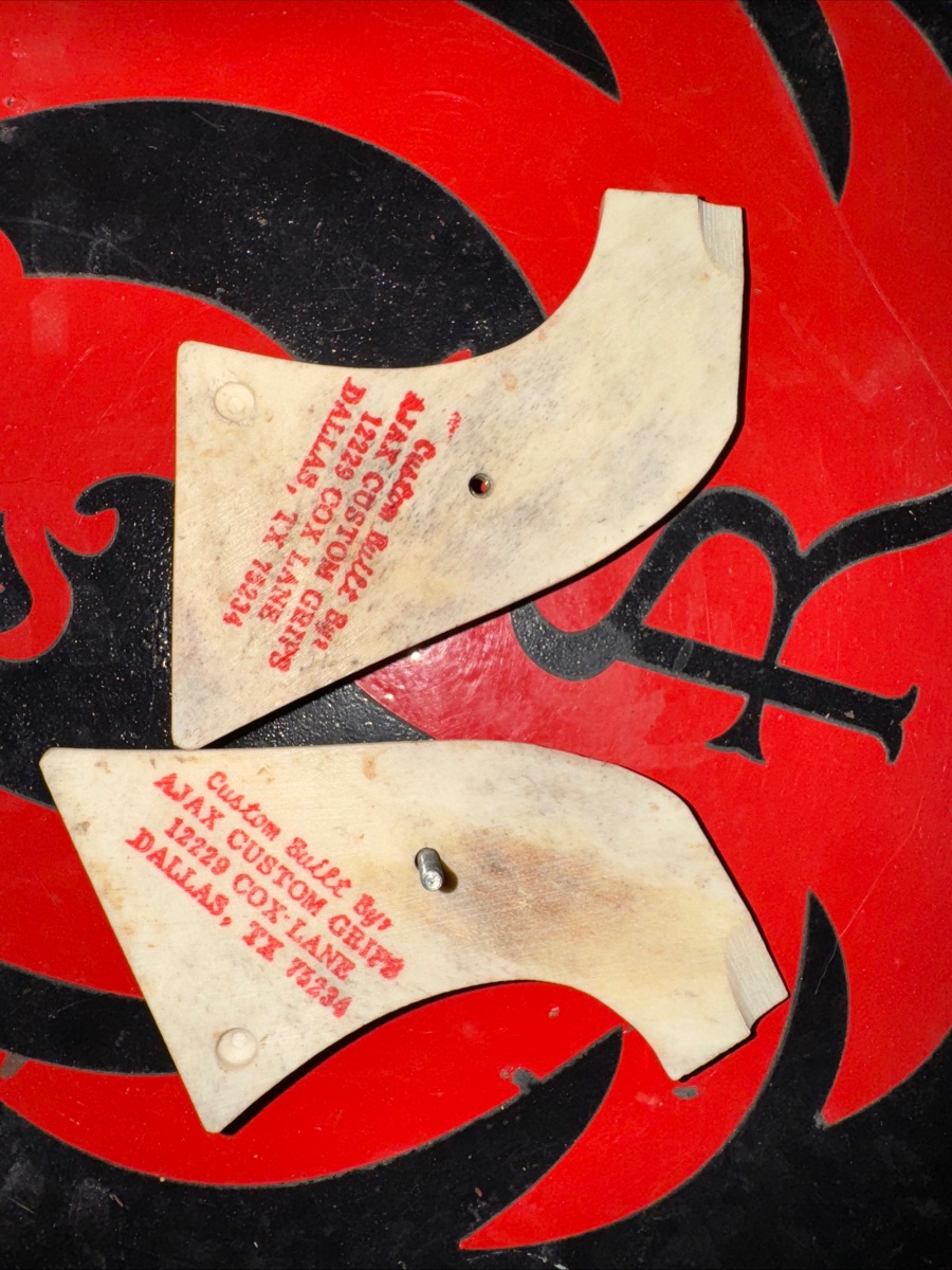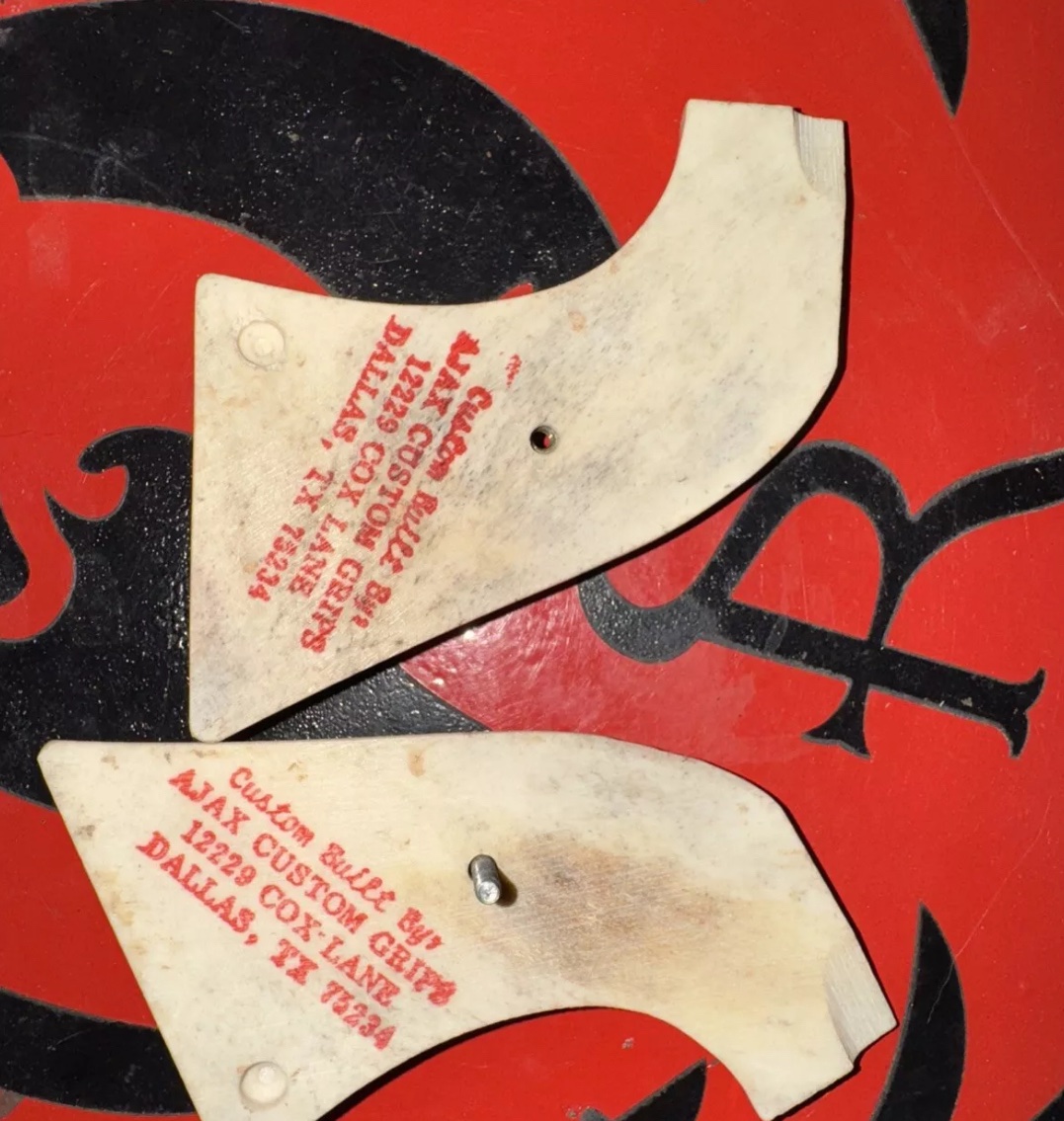 These are custom made for police dept. I got these years ago. The took the very limited Ruger red stag grips and made 3 pairs of these. I was lucky enough to end up with a set. I do have 2 pair of the plain stag grips and took me 40 years of collecting to get. The reg stags sold for 375. I have a set with price tag. This set belongs to someone who knows or has been searching. 625.00. You will never see a set like this again.
