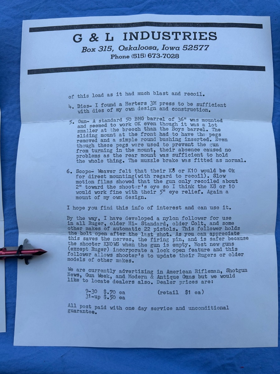 Look at section of letter pointed to by the broadhead…. But the info on the 50 cal is pretty interesting..