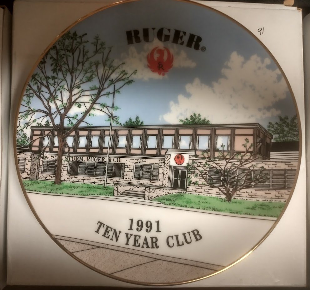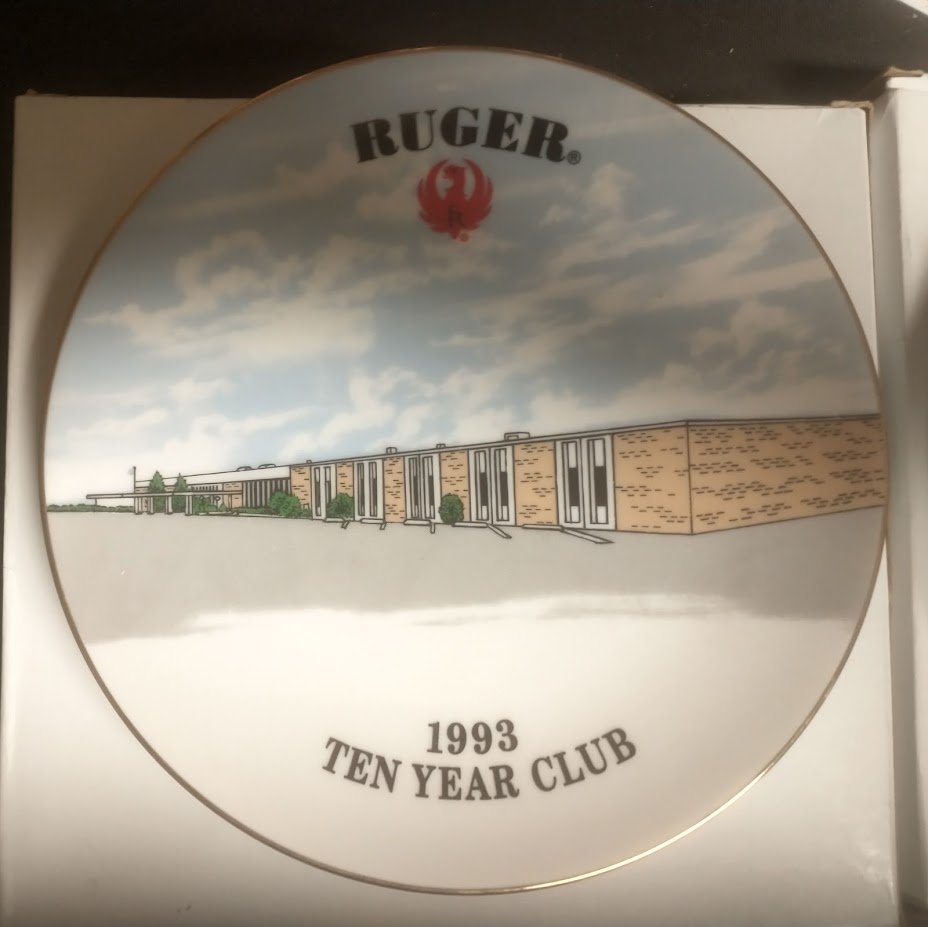 These are plates given to Ruger employees after 10 years of service. They include a 1990, 1991 and a 1993 plate with their boxes.