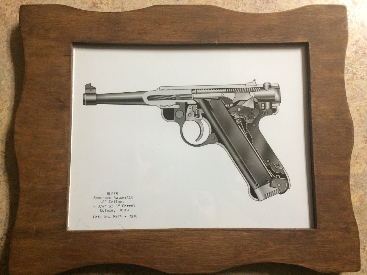 My wife gave me this frame to use on one of my Ruger walls in the house. Her great-grandfather made it in the early 50s and it hung in his house for many years. The standards are my favorites and I thought this factory photo to be a great fit. Now to find a spot on the wall! Enjoy.